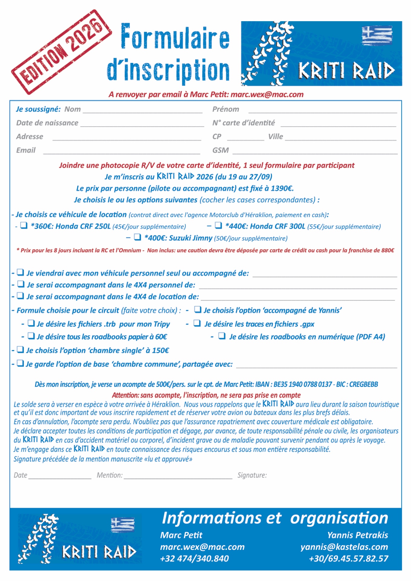 Merci de télécharger le formulaire d'inscription en cliquant sur le bouton "TELECHARGER", de l'imprimer, de le compléter et nous le renvoyer par email à l'adresse: marc.wex@mac.com